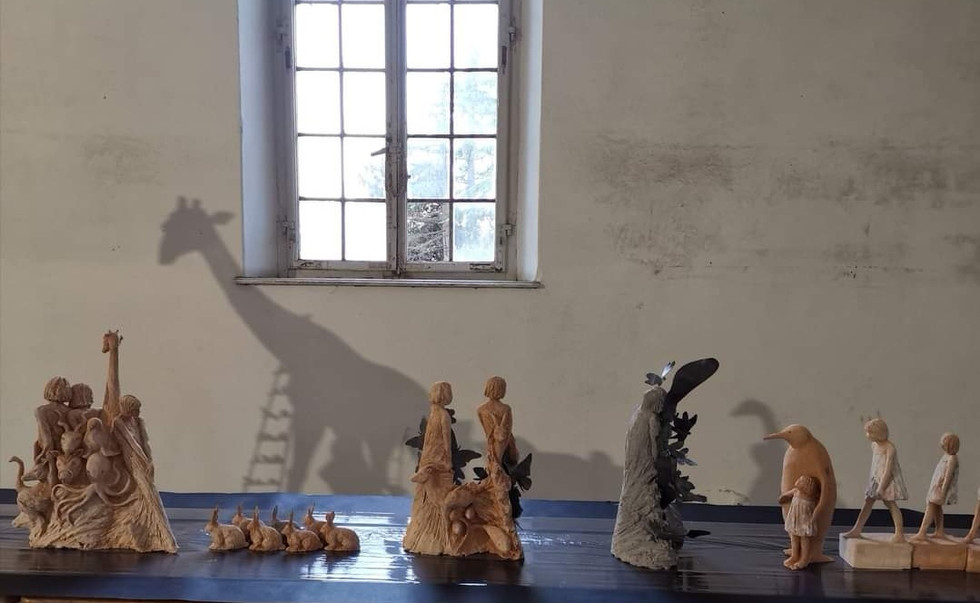 L’opera ” l’Arca” ci riporta al castigo, al diluvio e ci fa riflettere. E’ proprio necessario arrivare al limite per trovare una via di salvezza? Il corteo gioioso di bimbe e animali non ci sta dicendo che la via è un’altra? La risposta è nello sguardo della bimba che abbraccia il gigante della savana, la Giraffa, animale preveggente.